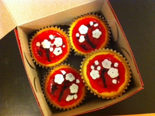 My cakes ended up being not too fluffy, but still tasted pretty good. The next day, I thought the cupcakes looked a little bland, so I decided to decorate them (since they were supposed to be a present also). I bought some red stackable cookie frosting, little candy flowers, and used a bar of dark chocolate that I had left over to try to make them look awesome.